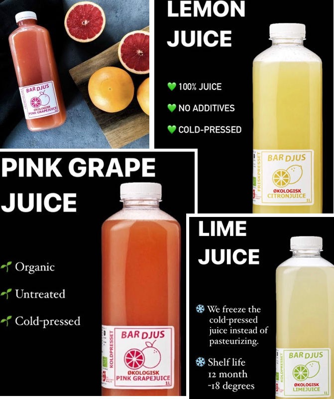 Fyrir þá sem ekki þekkja Bardjús, þá er um að ræða danskan framleiðanda sem kreistir eingöngu 100% hágæða ávexti þegar þeir eru í sínu besta ástandi. Djúsinn er síðan snöggfrystur samkvæmt framleiðsluaðferðum fyrirtækisins, sem tryggir að hann haldist ferskur í 7–11 daga eftir afþíðingu (fer eftir ávöxtum). Bragðið helst jafnt og ferskt frá því flöskunni er opnað.