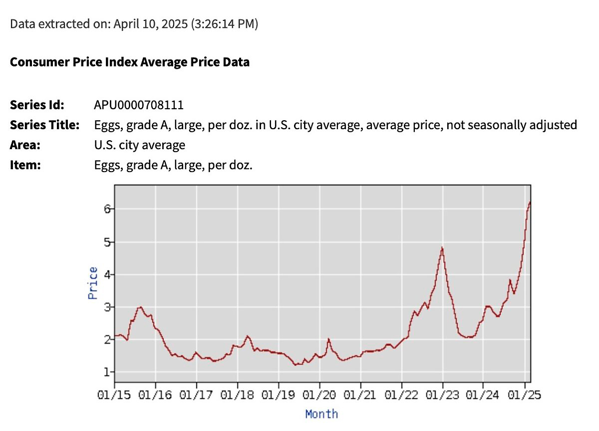 Athygli vekur að þrátt fyrir að heildsöluverð á eggjum hafi lækkað að undanförnu, eftir að stjórnvöld undir stjórn Trumps samþykktu aukinn innflutning vegna fuglaflensufaraldurs sem hafði skert framboð, hefur þessi lækkun ekki skilað sér til neytenda. Smásöluverð heldur áfram að hækka.