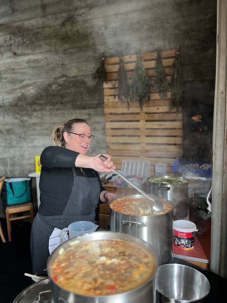 Þórhildur Jónsdóttir, matreiðslumeistari og fyrrverandi formaður Slow Food samtakanna á Íslandi, stóð yfir pottunum á Stórhóli í Skagafirði og stýrði eldamennskunni af öryggi og fagmennsku.