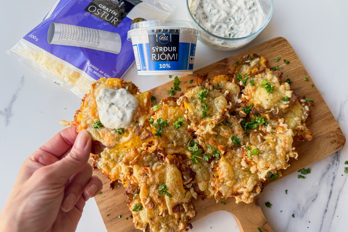 Fullkomið meðlæti eða forréttur: stökkar kartöflur með sósu