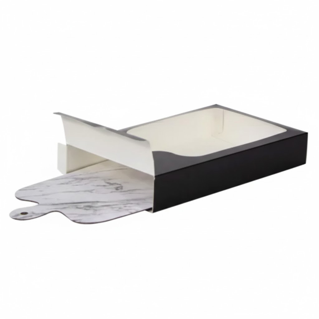 Fyrir veisluþjónustur og viðburði eru svo nýju veislubakkarnir og brettin sérstaklega áhugaverð viðbót. Svartir veislubakkar með gluggaloki bjóða upp á stílhreina umgjörð, en þeim fylgja einstök tvíhliða framreiðslubretti. Brettin eru með viðaráferð á annarri hliðinni en marmaraáferð á hinni, sem gefur veitingafólki tvo ólíka valkosti í framsetningu með einni og sömu vörunni.