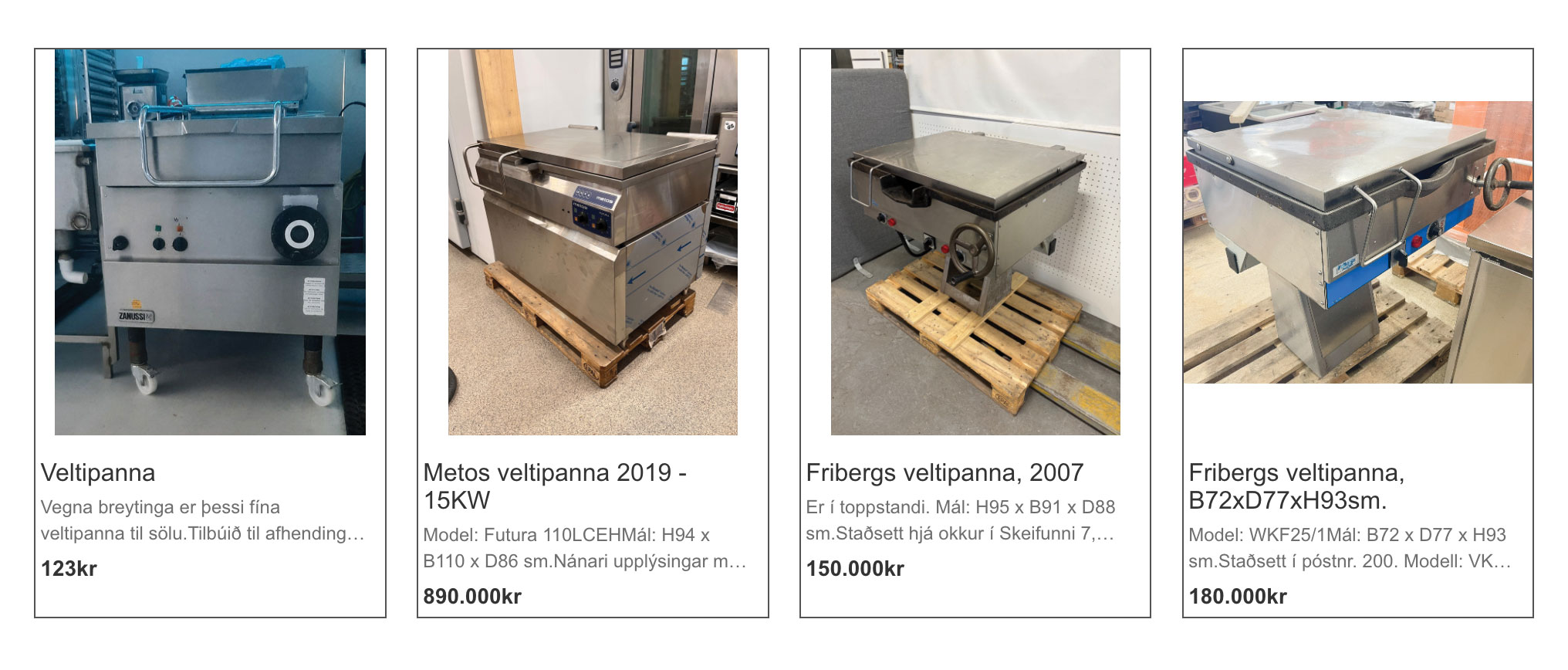 Efnisveitan býður upp á nokkrar vandaðar notaðar notaðar veltipönnur frá þekktum framleiðendum eins og Zanussi, Metos og Fribergs, í mismunandi stærðum og aflflokkum.
