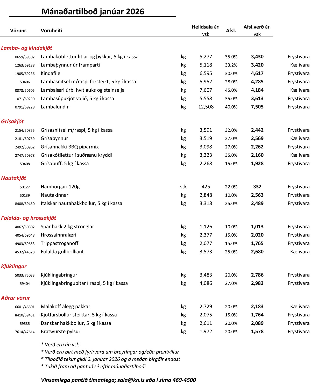Janúartilboð: Kjöt fyrir veitingastaði, mötuneyti og stóreldhús