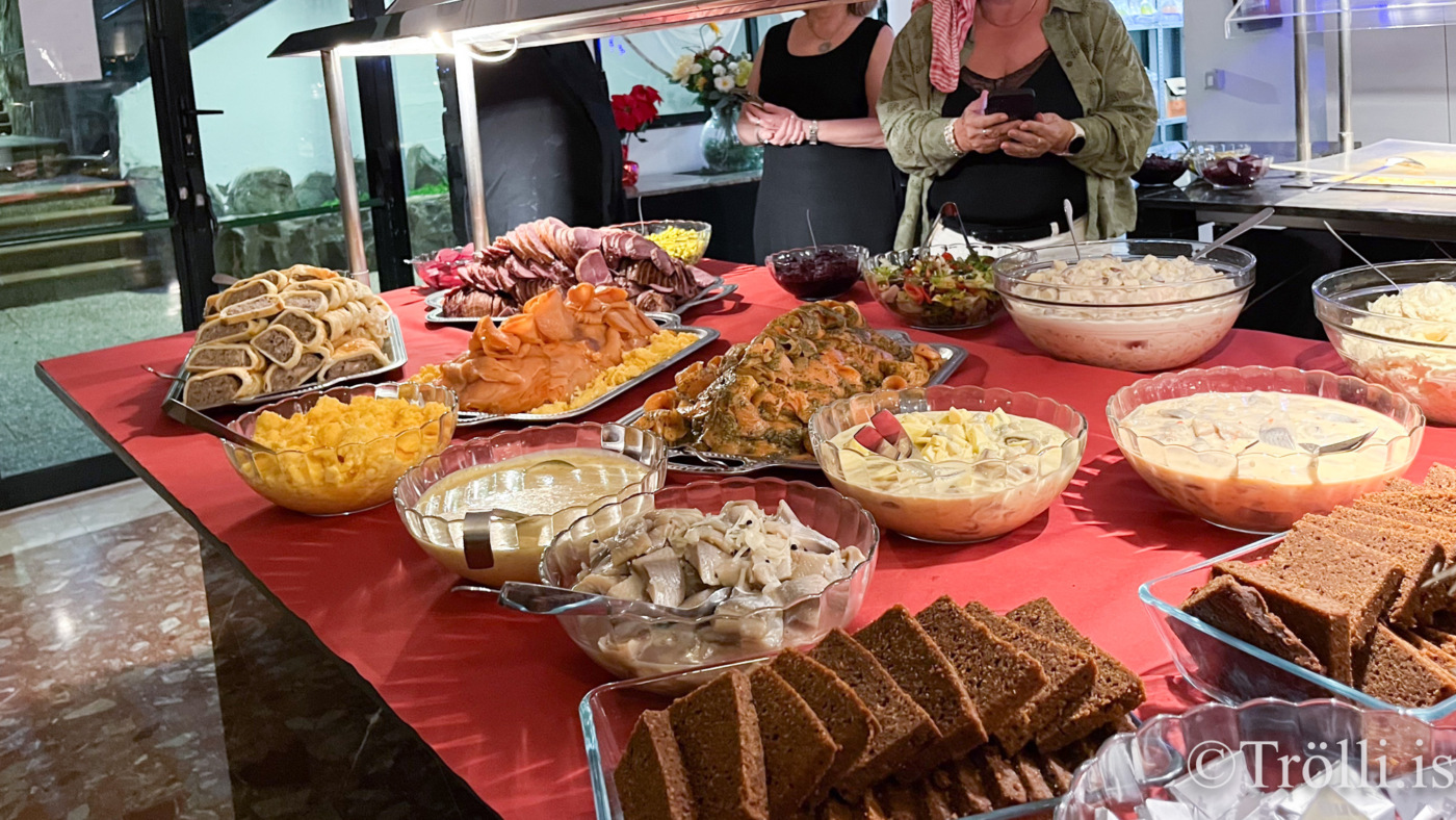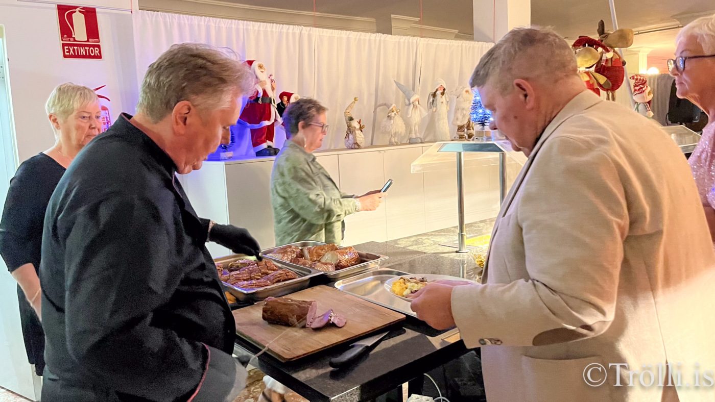 Veisluborðið svignaði undan kræsingum og var það matreiðslumeistarinn Kristján Örn Frederiksen sem sá um eldamennsku og framsetningu á jólahlaðborðinu, ásamt öflugu og samstilltu starfsfólki eldhússins. Kristján Örn lærði matreiðslufræðin á Hótel Sögu og útskrifaðist þaðan sem matreiðslumaður vorið 1981. Reynslan og fagmennskan leyndu sér ekki, enda var maturinn bæði fallega fram borinn og afar bragðgóður.