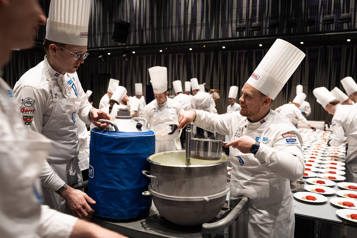 Yfirmatreiðslumenn kvöldsins voru Arnar Darri Bjarnason og Ísak Aron Jóhannsson, sem báru ábyrgð á heildarútfærslu matseðilsins og samhæfingu fjölmargra aðila. Vín og óáfeng pörun kvöldsins var í höndum Vínþjónasamtaka Íslands, sem mótuðu pörunina af mikilli fagmennsku og í nánu samtali við réttina. Framreiðsla var í höndum Barþjónaklúbbs Íslands og gekk þjónustan snurðulaust og með miklum glæsibrag.