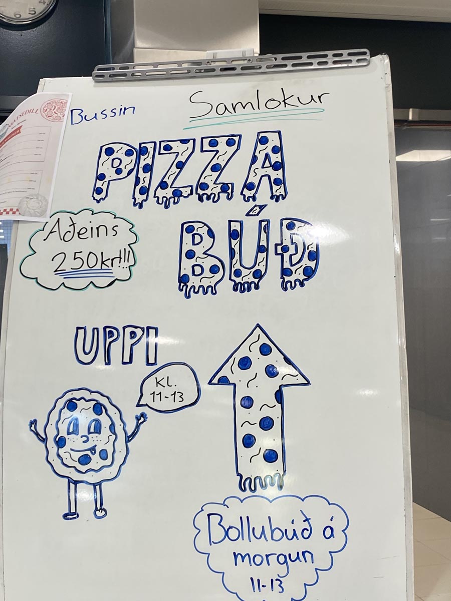 Í gær var slegið upp pylsupartíi sem vakti mikla lukku. Þá lagði bakaradeildin í Hótel- og matvælaskólanum sitt af mörkum og sá til þess að nemendur og kennarar gætu notið gómsætra pizza, samloka, bolla og annarra sætra veitinga. Matarkosturinn féll í góðan jarðveg og bætti enn í hátíðlega stemningu daganna.