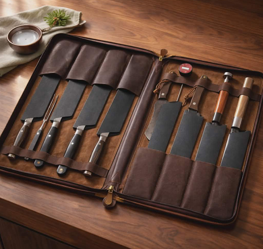 Beittir hnífar hafa bætt við vöruúrval sitt nýrri hnífatösku sem er hönnuð með þarfir fagfólks og mataráhugafólks í huga. Taskan er úr þykku leðri og ætluð til að halda hnífum vel skipulögðum og öruggum, bæði í eldhúsi og á ferðinni.