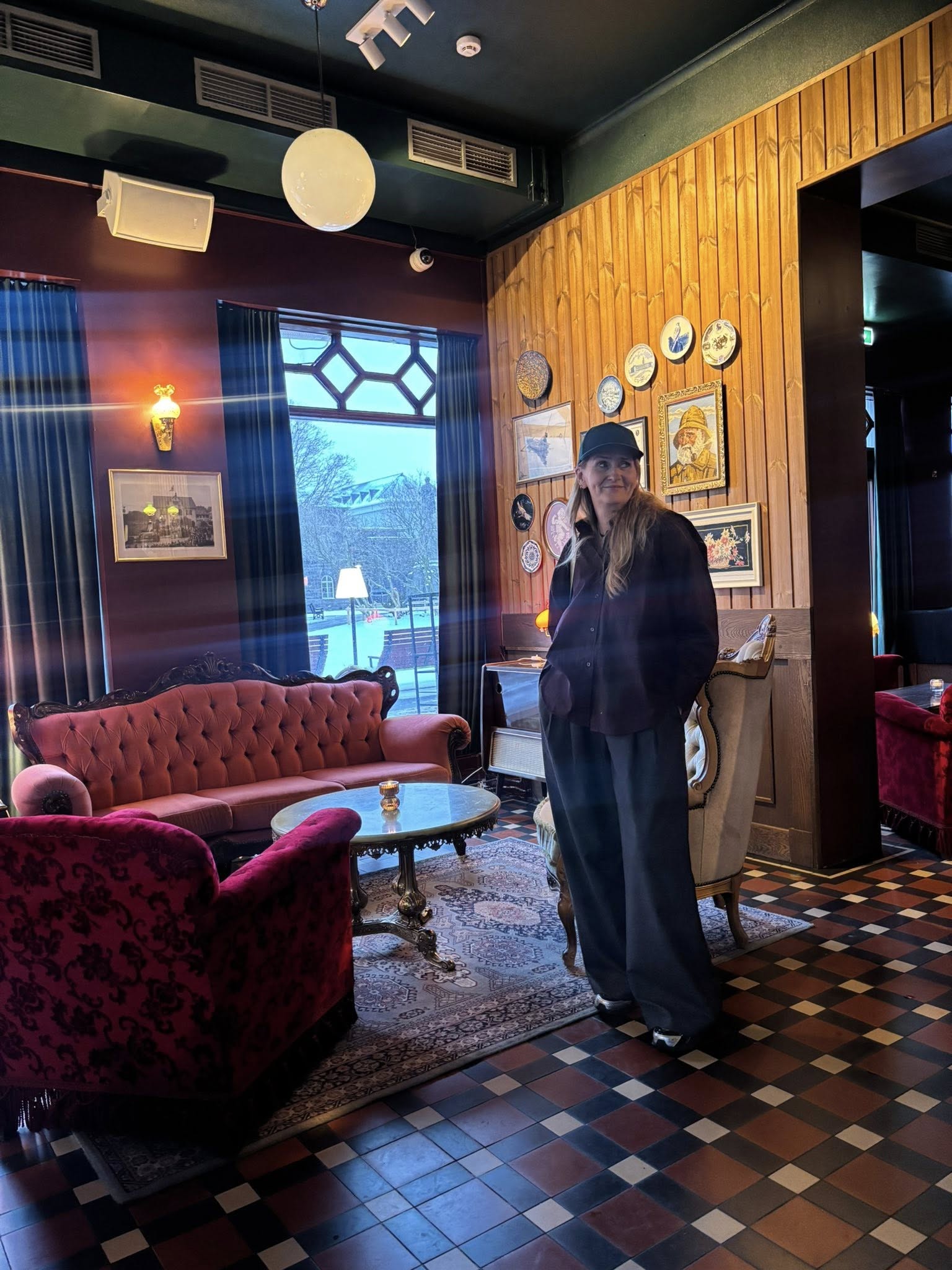 Kristín Júlla Kristjánsdóttir, hönnuður Gamla Reykjavíkur, í sal veitingastaðarins við Austurstræti 14.