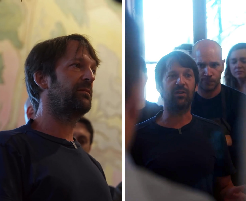 Hér má sjá þegar René Redzepi tilkynnir starfsfólki Noma um afsögn sína.