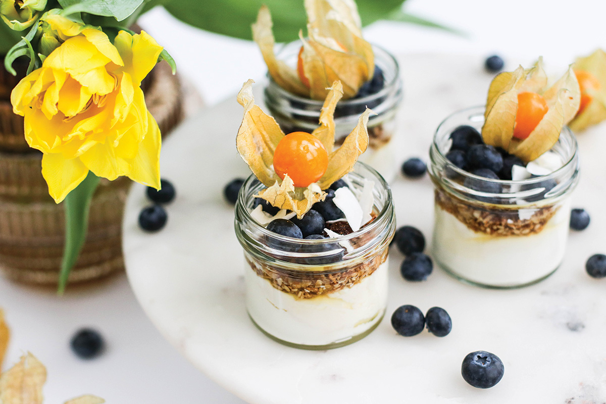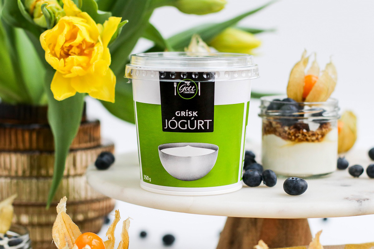 Sæt og fersk páskajógúrt með agave og bláberjum