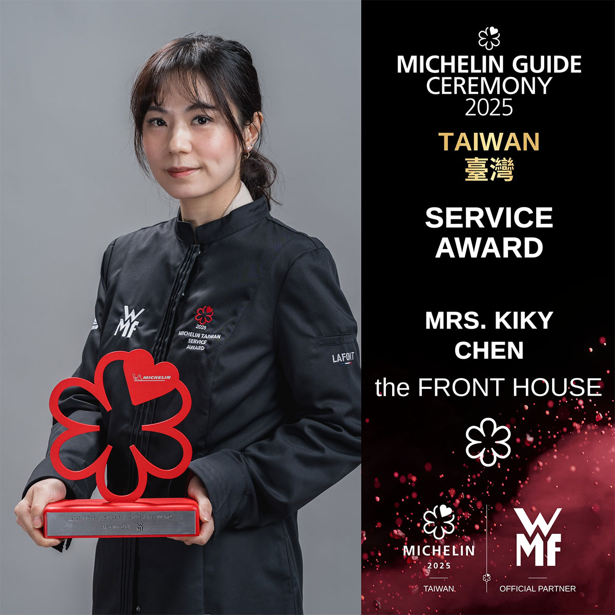 Kiky Chen hlaut þjónustuverðlaun Michelin í Taívan 2025. Hún er veitingastjóri á the FRONT HOUSE í Kaohsiung sem nýverið fékk sína fyrstu Michelin stjörnu.