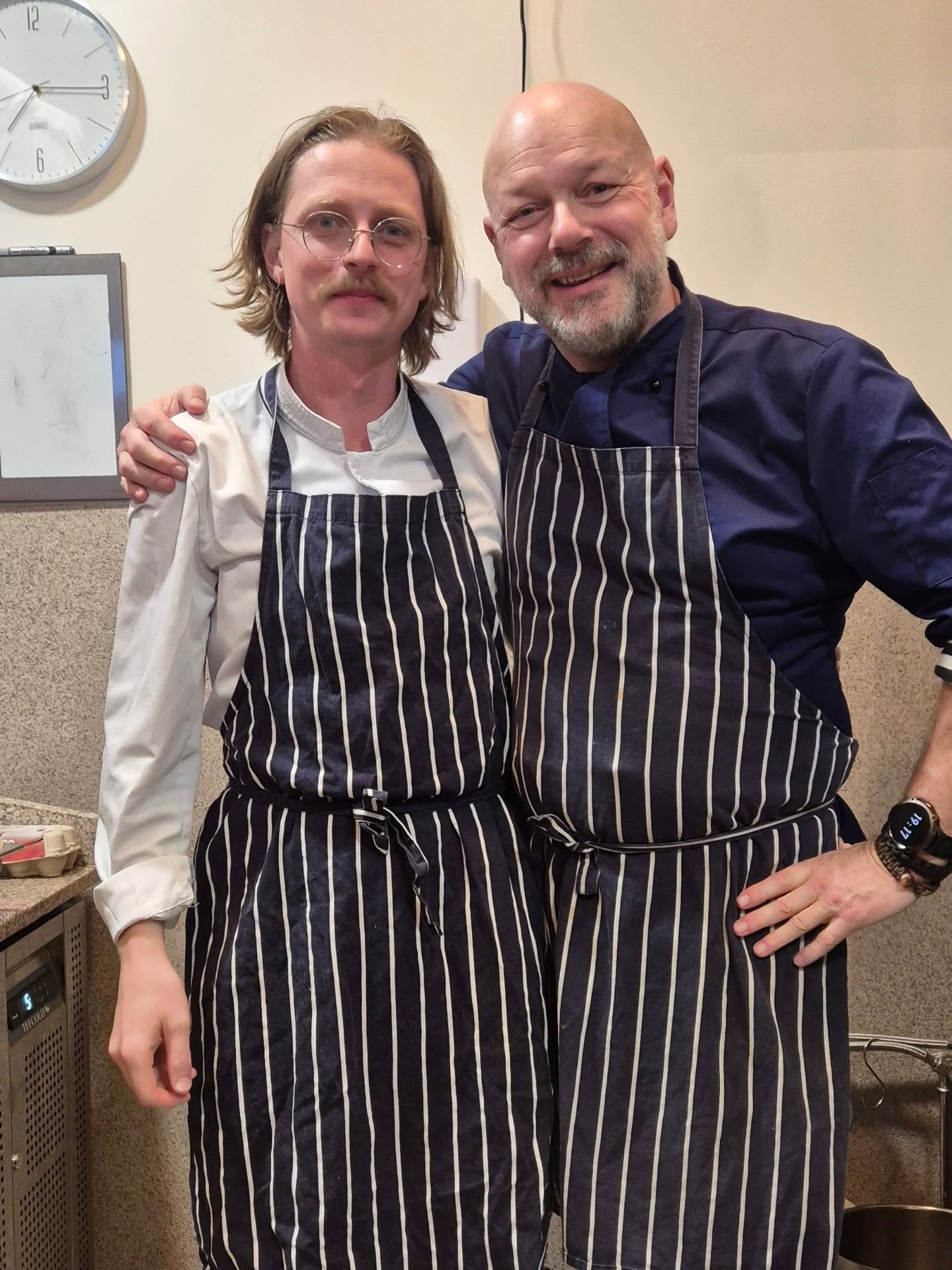 Síldarkaffi á Siglufirði var þéttsetið á þriðjudagskvöld þegar kokkar sumarsins, þeir Elias Johansson og Ted Karlberg frá Karlskrona í Svíþjóð, buðu upp á sex rétta kvöldverð sem vakti mikla lukku meðal gesta.