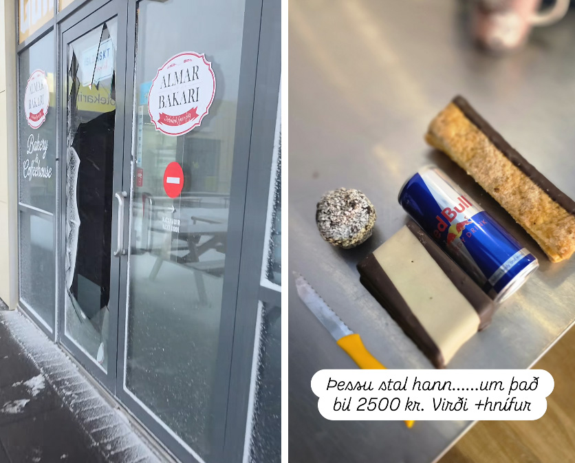 „Þetta er í fyrsta sinn sem við lendum í því að það sé brotist inn til okkar, á 17. afmælisárinu okkar. Annars erum við bara góð. Við erum mjög ánægð með að ekki varð meiri skaði og hann skemmdi ekki meira en þessa rúðu.“