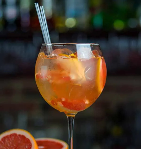 Toppaðu með smá sódavatni og skreyttu með greipaldinssneið.