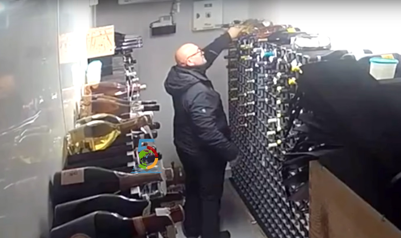 Öryggismyndavélar náðu Iuliu Kubola að störfum í vínkjallara veitingastaðarins þar sem hann valdi vandlega úr hillum dýrmæt vín.