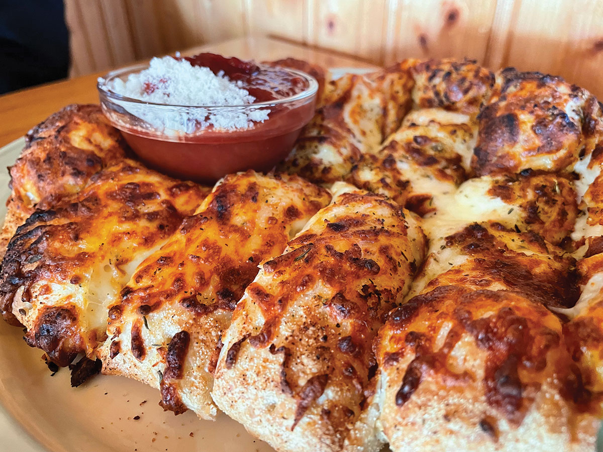 Matseðillinn er fjölbreyttur og hefur ákveðin sérkenni, þar má finna áhugaverða rétti sem sjaldan sjást annars staðar á landinu. Við pöntuðum bleikju með kremuðu bankabyggi og ristuðu grænmeti (5.830 kr.). Rétturinn var flott eldaður, stór skammtur og bragðið framúrskarandi. Brauðstangir með sósu (2.130 kr.) komu einnig vel út.
