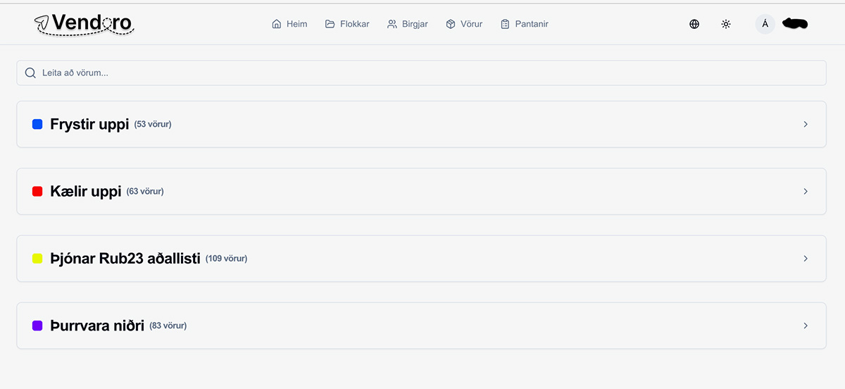 Hann útskýrir að áður hafi ferlið við pantanir verið tímafrekt. Kveikt á tölvu, prentaður excel-listi, gengið um húsið og merkt við vörur, farið aftur á skrifstofu, opnaðar átta vefverslanir og allt ferlið klárað frá grunni. Í dag taki sams konar vinna um tíu mínútur. Notandi opni Vendoro í símanum, merki við þær vörur sem vantar og sendi inn pöntun sem dreifist sjálfkrafa til rétts birgja.