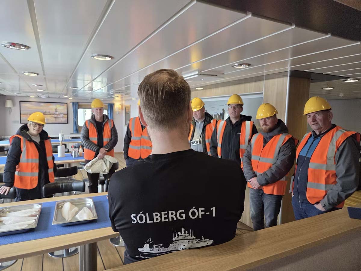 Á Siglufirði heimsótti hópurinn lykilframleiðanda á sjófrystum flökum fyrir breska markaðinn, Ísfélagið/Ramma, og fékk jafnframt skoðunarferð um eitt glæsilegasta skip landsins, frystiskipið Sólberg ÓF-1.